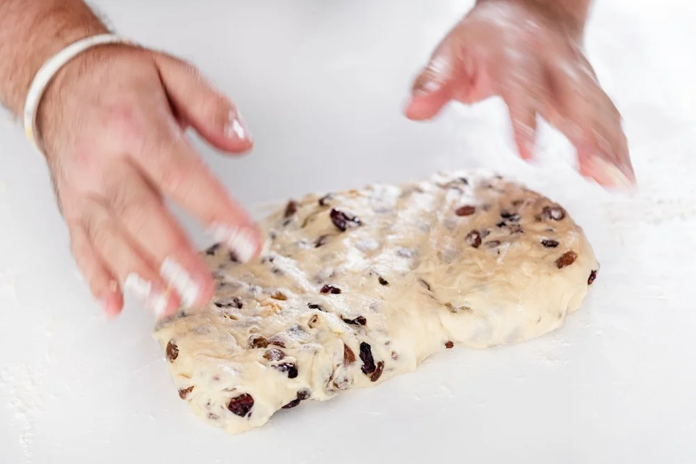 5. Na pomoučené desce vytvarujte obdélník, který přehněte do tvaru štóly. (viz 2. obrázek)