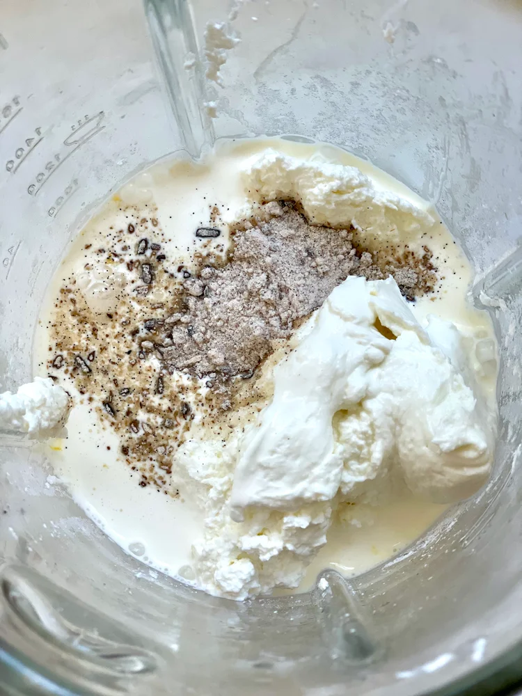 5. Do stolního mixéru navažte všechny ingredience na náplň a rozmixujte dohladka. Dobře poslouží také tyčový ponorný mixér.