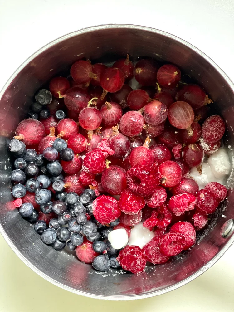 1. Na základ smíchejte v míse nebo v kuchyňském robotu mouku, cukr, sůl a máslo a vytvořte základ pro drobenku.