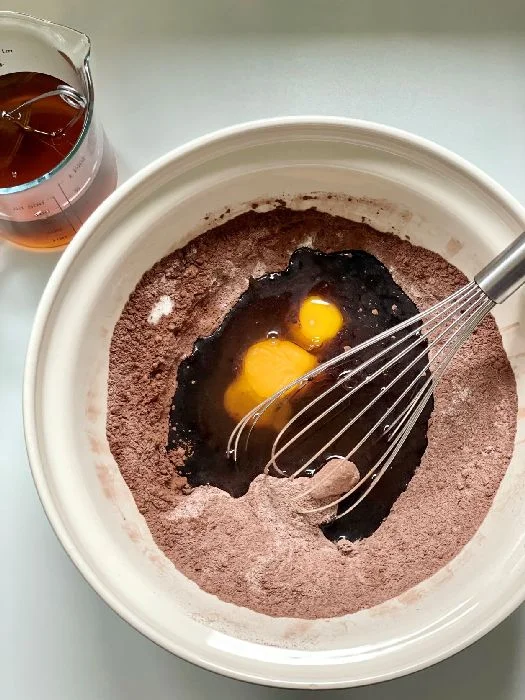3. Poté přidejte všechno ostatní a opět ruční metličkou a nebo pouze stěrkou zamíchejte dohladka.