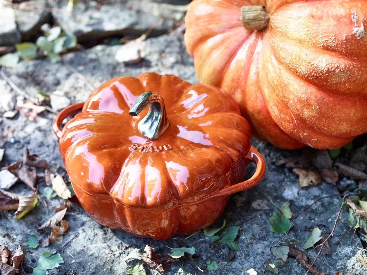 Nádherné servírování, a přitom ale také kvalitní vaření zažijete s hrnci značky Staub a jejími legendárními litinovými Cocotte hrnci. Pro příležitost podávání dýňové polévky se výborně hodí Cocotte hrnec právě ve tvaru dýně. V tomto hrnci se vám bude chtít ale podávat vše, od polévek po skvělé omáčky.
