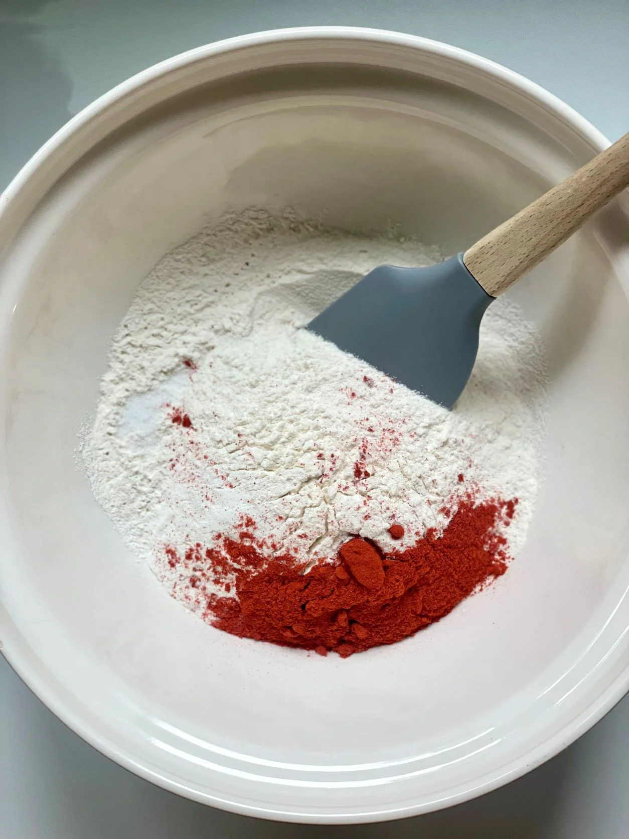 - Do mísy navažte všechny suché ingredience, krátce zamíchejte, poté přidejte vodu a víno a vypracujte hladké a nelepivé těsto, které zabalte do potravinářské fólie a nechte v lednici asi 1 hodinu dobře odpočinout, těsto ale nesmí oschnout.