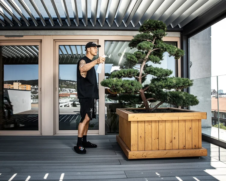Ano, roční cockapoo Anička a 40letý japonský bonsai.
