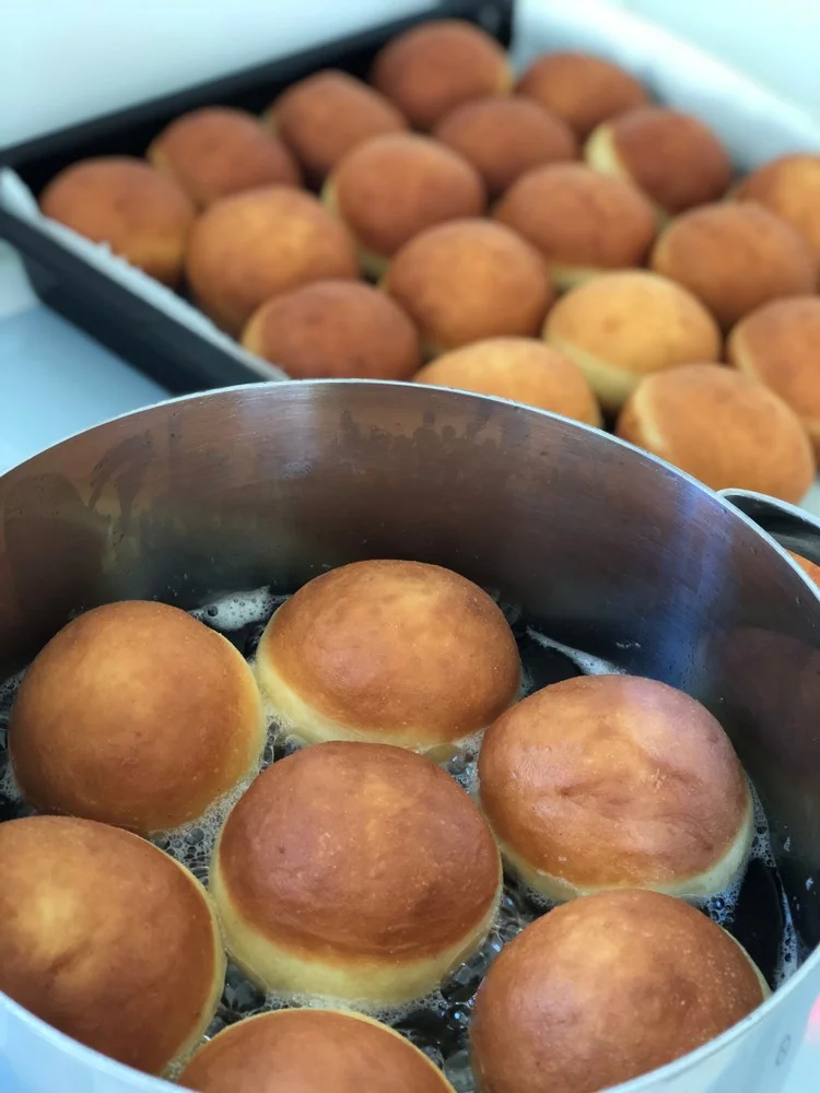 4. Jakmile zjistíte, že jsou koblihy nakynuté, rozpalte olej a ihned začněte smažit, aby vám kobližky nepřekynuly. Před ponořením do rozpáleného oleje, omeťte z nakynutých koblih přebytečnou mouku. Zamezíte tím zbytečnému přepalování a tvrdé kůrce, kterou na nich jistě mít nechcete.
