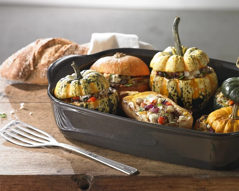 Hranaté zapékací formy jsou skvělou volbou pro přípravu bramborových gratinů, oblíbené italské klasiky v podobě lasagní či sladkých dezertů. Velkým benefitem hranaté nádoby je, že nejenže rovnoměrně rozkládá teplo, a za jejího použití tak vykouzlíte dokonalou křupavou texturu, ale je i ideálním tvarem pro dělení pokrmu na jednotlivé porce.