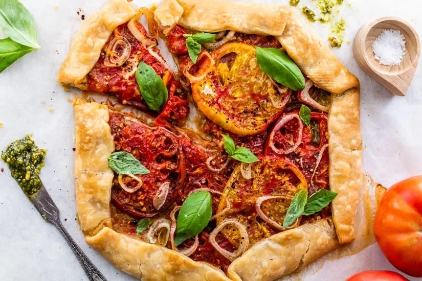 Kam s bohatou úrodou rajčat? No přece na plech! Rustikální koláč původem z Francie jich snese opravdu hodně. A právě kombinace různých druhů rajčat dodá galetce pestrobarevný vzhled a jedinečnou chuť.