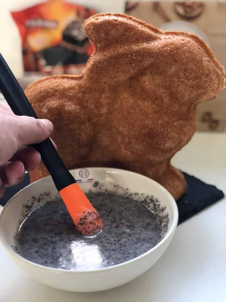 7. Máte-li polevu hotovou, vyjměte zajíce z formy, spodní hranu lehce seřízněte, kvůli větší stabilitě hotového zajíce.