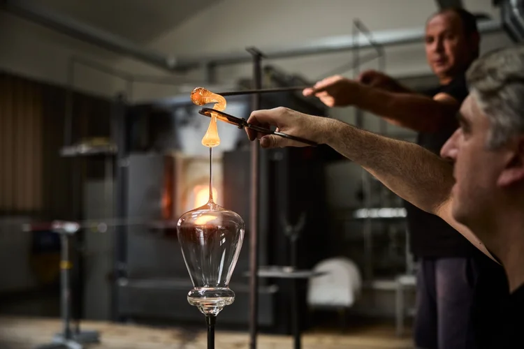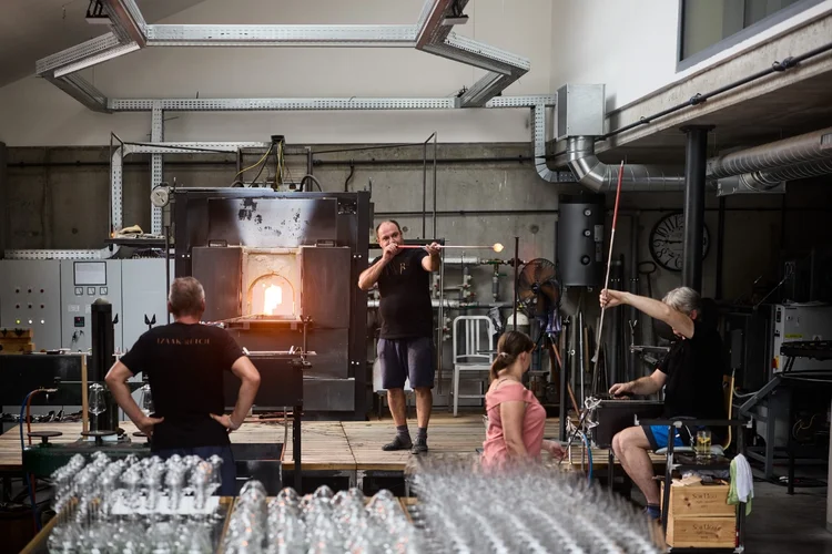 Sklářské mistry svého řemesla, opravdové kouzelníky ovládající sklářskou magii, pak našel v nedaleké Květné, které svého času hrozilo zastavení provozu. Za svým cílem vytrvale jdoucí Adam Havlíček strávil ještě mnoho času vybíráním té nejvhodnější technologie výroby budoucích sklenic, dnes nesoucích decentní R na dýnku. Výsledkem je dnes nejmodernější sklárna v Evropě, s elektrickou pecí, provozovaná udržitelným způsobem, kde zbytkové teplo plně využívá provoz přilehlého hotýlku.